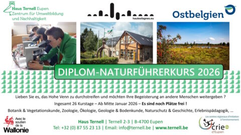 Lieben Sie es, das Hohe Venn zu durchstreifen und möchte Ihre Begeisterung an andere Menschen weitergeben? Botanik und Vegetationskunde, Zoologie, Ökologie, Geologie und Bodenkunde, Naturschutz und Geschichte, Erlebnispädagogik…. Es sind noch Plätze frei! Ab Mitte Januar 2026 – insgesamt 26…